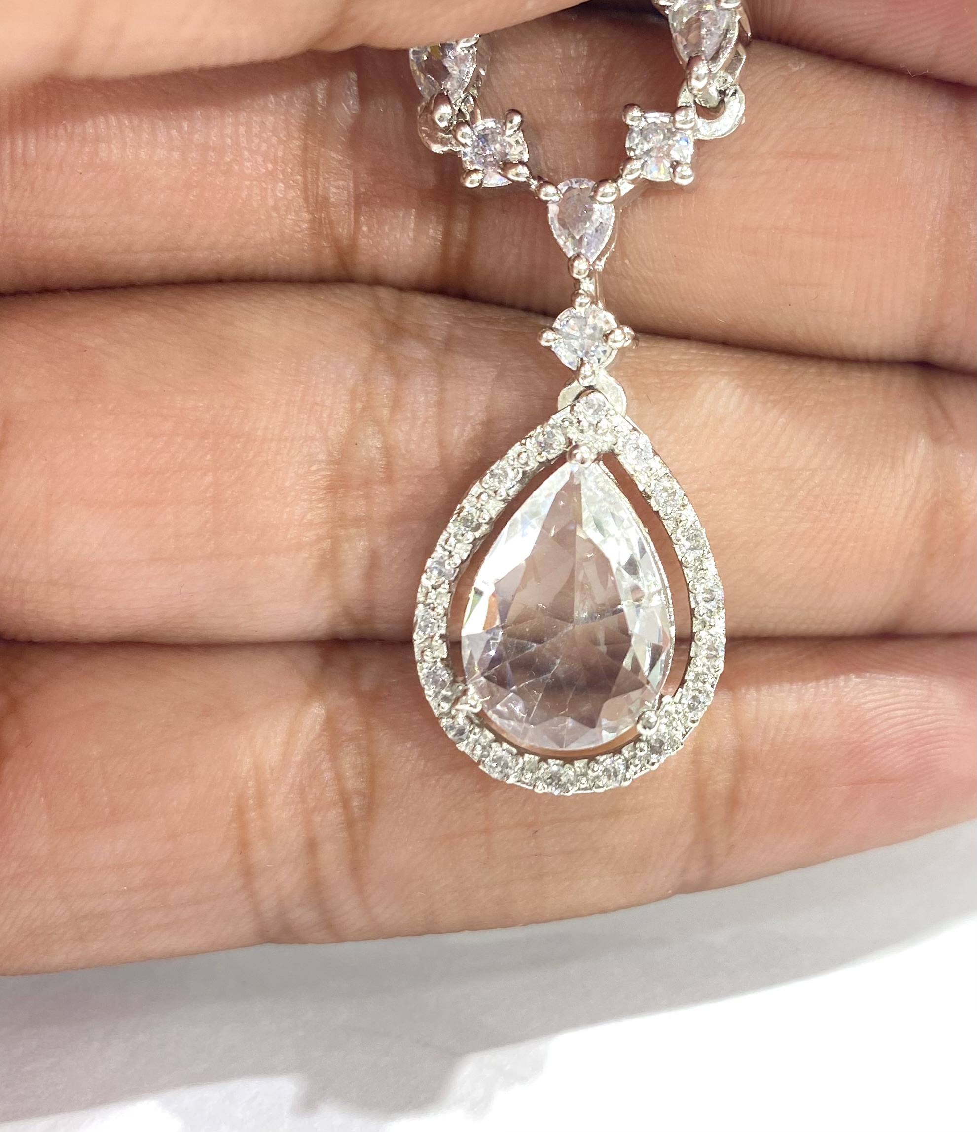 AD Jewellery in pure silver colour with a delicate silver stone. Lightweight and perfect for festive or traditional functions.