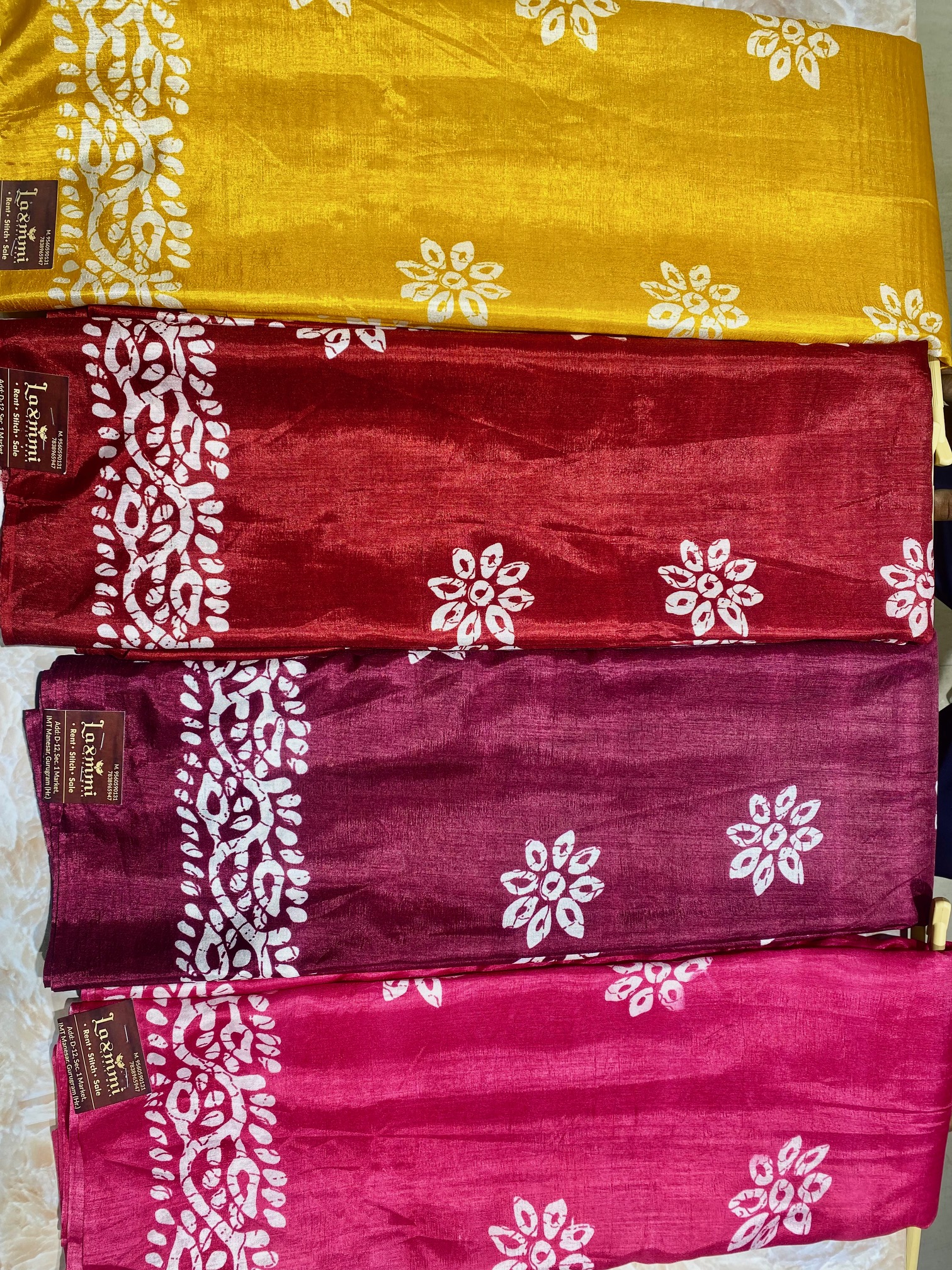 Batick print cotton silk saree with blouse in 4 vibrant colours – elegant and comfortable for all occasions.