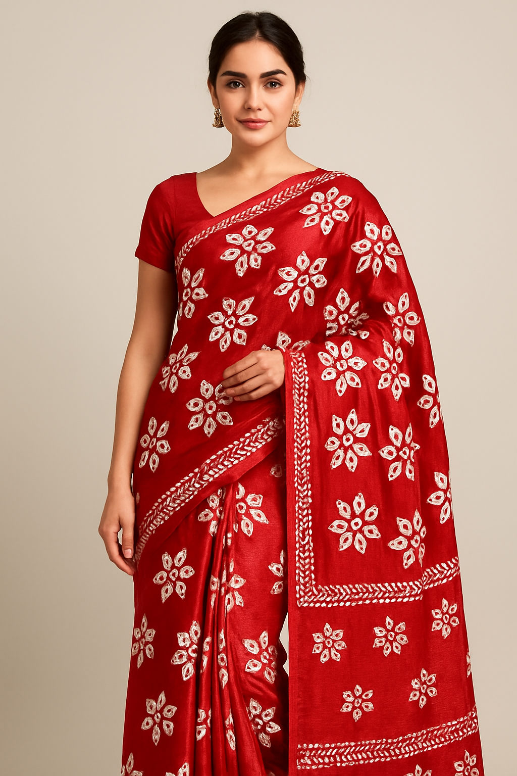 Batick Print Cotton Silk Saree with Blouse – 4 Vibrant Colours