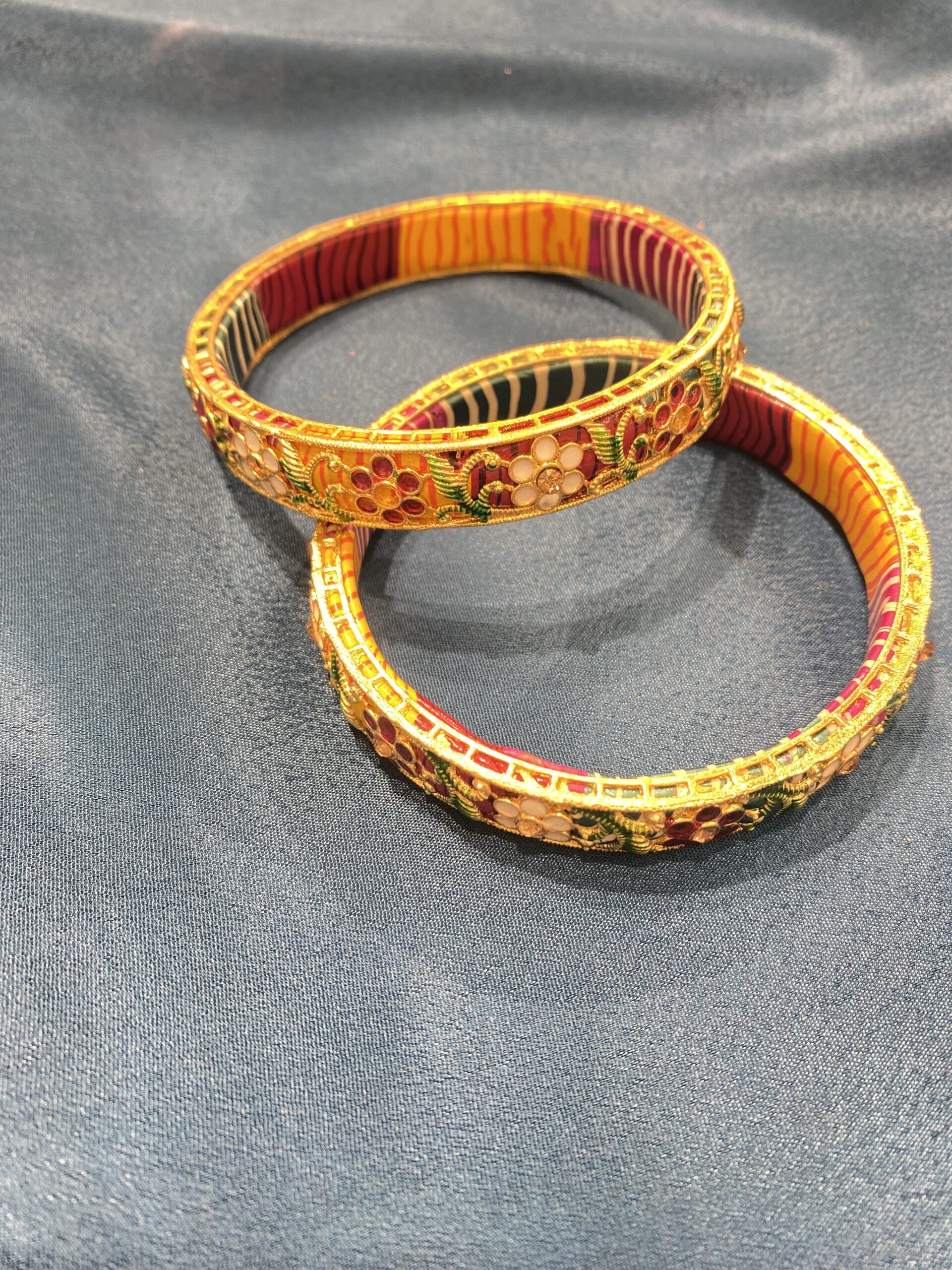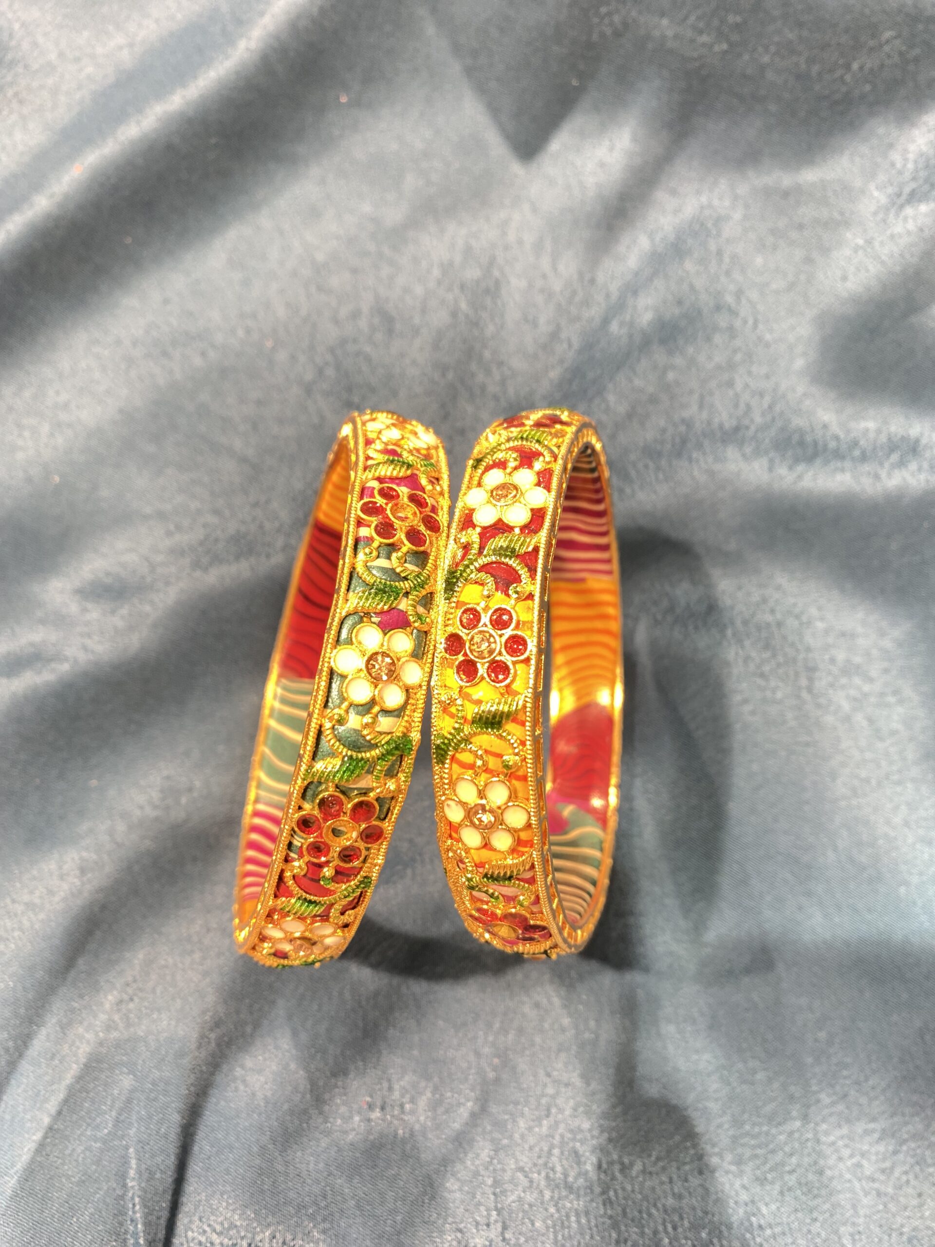 Jaipuri kada with floral design, metal outer layer & multicolour lac inside – elegant and festive.